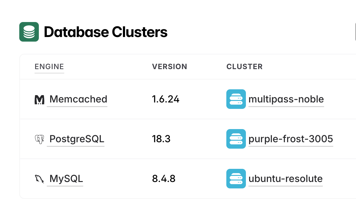 Run PostgreSQL, MySQL, SQLite, and others locally for free or easily connect managed databases with environment variables.
